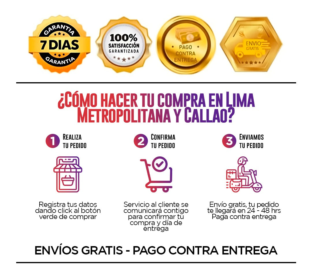 Sabemos que muchas veces desconfías de las compras por internet, por eso hemos hecho el proceso tan simple que puedes pagar recién cuando recibas tu producto.