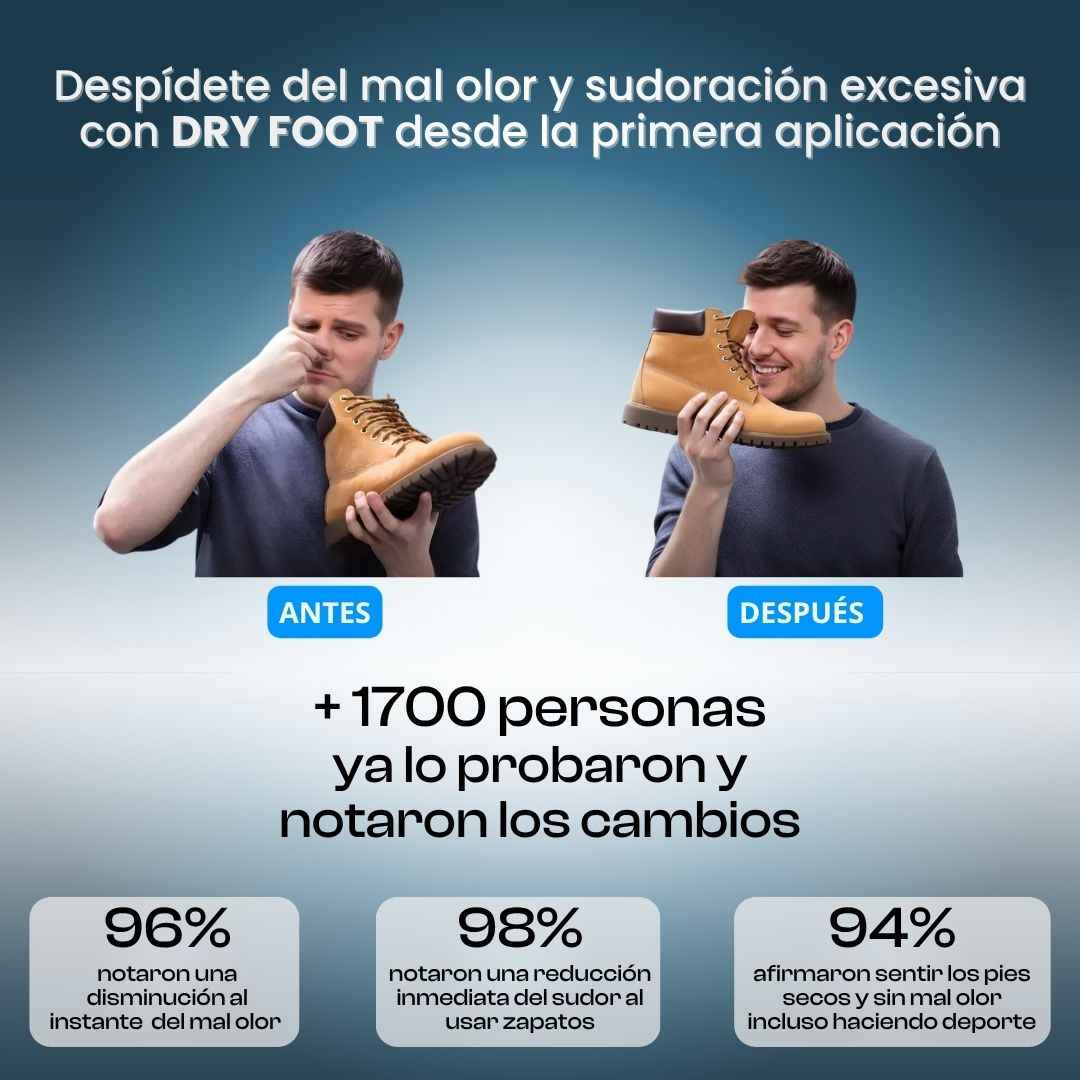 Siempre me incomodaba el olor de mis zapatos. Desde que uso DRY FOOT, eso desapareció por completo.